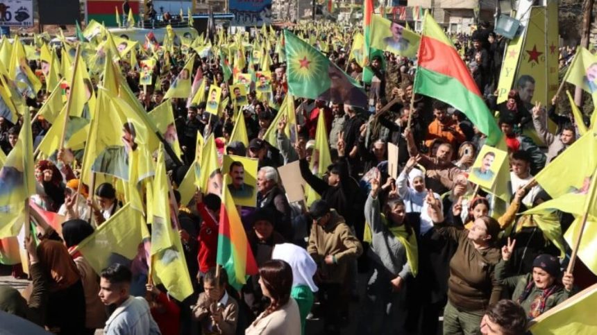 Di meşê de parkarta “Êrişa 6’ê Çileyê ya li ser Rojava, plangeriya duyemîn a 15’ê Sibatê ye” hat hildan. Gel bi yek dengî û nîşaneyên serketinê dirûşmên “Bijî Berxwedana Îmralî”, “Bijî Serok Apo”, “Bê Serok Jiyan Nabe” û “Berxwedan Jiyan e” berz kirin.