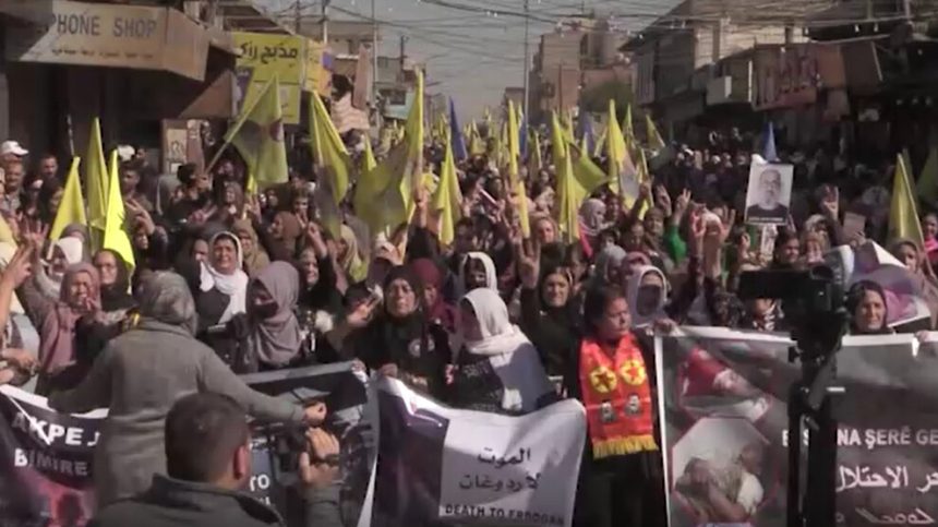 Pariya Yekitiya Demokrat (PYD) li dijî êrîşên dewleta Tirk a dagirker, li Qamişloyê meşeke girseyî lidar xist.