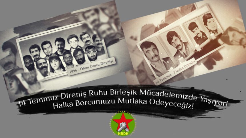 HBDH’ê da xuyakirin ku ev berxwedan heta roja îro jî berdewam dike û got ku li dijî tecrîda girankirî Rêberê Gelê Kurd Abdullah Ocalan li ber xwe dide û wiha domand, “Li dijî girtiyên şoreşger û welatparêz êrîş hene. Teslîmiyet tê ferzkirin û cezayên keyfî tên dayîn. Faşîzm li pêşberî her rêber, şoreşger û welatparêzekî ku nikare teslîm bigire her roj têk diçe. Ev têkçûn dewletê her roj bêhtir hartir dike. Ji bo vê jî berxwedana 14’ê Tîrmehê li hemû girtîgehan bi taybetî li Îmraliyê didome.