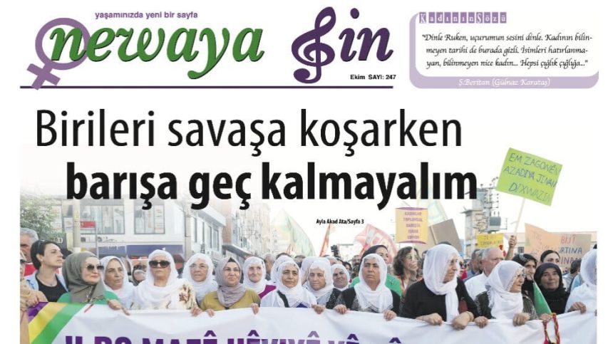 Rojnameya Newaya Jin ku dengê têkoşîna azadiyê ya jinan e, bi hejmara xwe ya meha Cotmehê gihîşt ber destê xwendekarên xwe. Rojnameyê li ser mijarênİ komploya navneteweyî ya 9’ê Cotmeha 1998’an a li hemberî Rêber Apo, şehîdên meha Cotmehê yên Tevgera Jinên Kurd, bûyerên rojane yên li qada civakî, hiqûqî û siyasî yên bi perspektîfên ‘Aştî û Civaka Demokratîk’, nîqaşên li ser guherîn û veguherînê û ‘Destûra Bingehîn a Jinê’ ya ku armanceke, dosyayên berfireh amade kir.