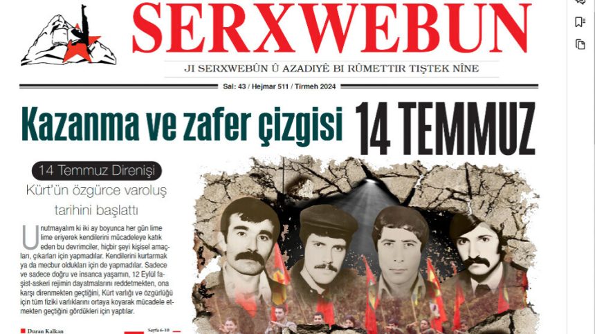 Dûran Kalkan bi sernavê ‘Berxwedana 14’ê Tîrmehê dîroka hebûna azad a Kurdan da destpêkirin’ gotarek nivîsî û tê de destnîşan kir ku hîmê esasî yê destketiyên heyî yên Kurd û Têkoşîna Azadiyê ya Kurdistanê Berxwedana 14’ê Tîrmehê ye.