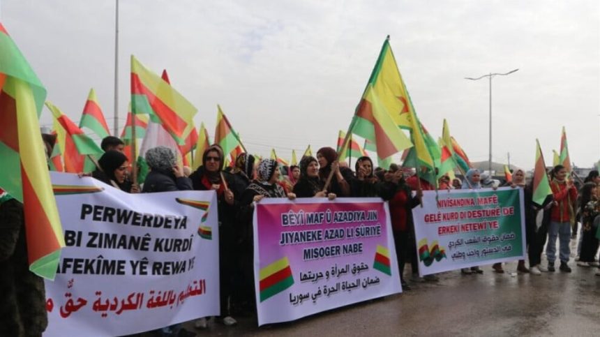 Şêniyên ku li Çerxerêya Kevokê ya taxa Til Hecer a Hesekê kom bûn, pankartên bi nivîsên “Perwerdehiya bi zimanê Kurdî mafekî rewa ye”, “Maf û azadiya jinan garantiya jiyan û azadiyê li Sûriyeyê ye”, û “Garantîkirina mafên gelê Kurd di destûrê de erkekî neteweyî ye” hatin vekirin.