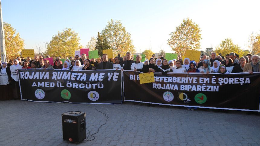 Hevseroka DBP’ê ya Amedê Sûltan Yaray di çalakiyê de axivî. Sûltan Yaray, berxwedana Bakur û Rojhilatê Sûriyeyê weke “berxwedana rûmetê” destnîşan kir û wiha got: “Divê em Kurd li dora vê berxwedanê bibin yek. Em xwedî li destkeftiyên xwe derkevin. Êrîşên li wir tên kirin, li dijî destkeftiyên Kurdan e. Her çend di navbera me de sînor hebin jî, em heman gel in, em yek in. Kî bi kîjan mafan bijî, em jî dê bi wan mafan bijîn. Gelê Kurd êdî dixwaze li ser xaka xwe azad bijî. Ne bi çeteyan re, bi gelê Kurd re hevdîtinan bikin. Banga me ji bo hemû Kurdan û dostên wan e; li dora Rojava bibin yek.”
