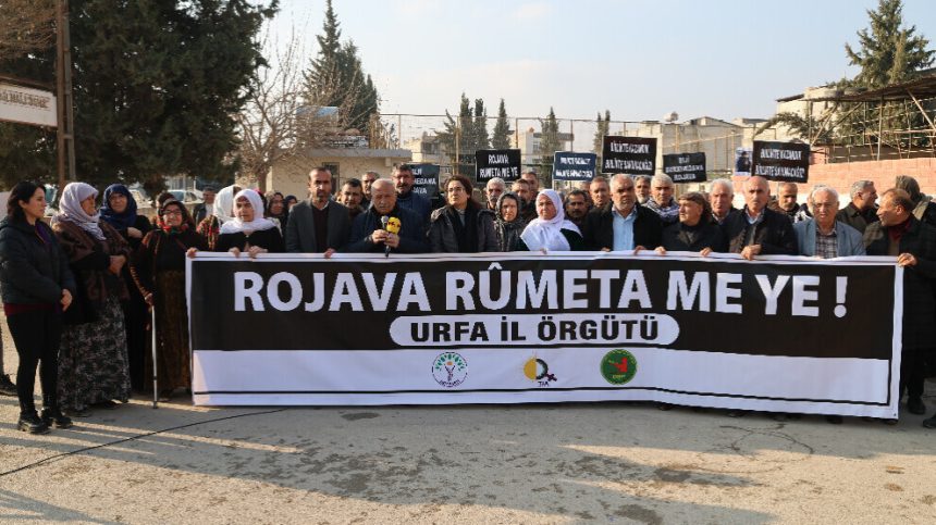 Li cihê nobetê daxuyanî hate dayin. Di daxuyaniyê de pankart û dovîzên “Rojava rûmeta me ye” û “Em bi hev re bi ser ketin û wê bi hev re biparêzin” hatin hilgirtin. Di heman demê de wêneyên rojnamevan Nazim Daştan û Cîhan Bîlgîn ên di êrişa hewayî ya dewleta Tirk de hatin qetilkirin, hatin hilgirtin. Hevserokê DBP’ê ya Rihayê Mahmût Manas diyar kir ku wê xwedî li Kobanê derkevin.