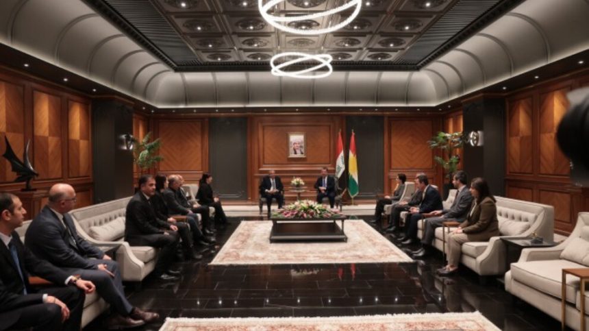 Heyeta Îmraliyê ya Partiya Demokrasî û Wekheviyê ya Gelan (DEM Partî) li bajarê Hewlêr ê Başûrê Kurdistanê bi Serokwezîrê Herêma Kurdistanê ya Federe Mesrûr Barzanî re hevdîtinê dike.