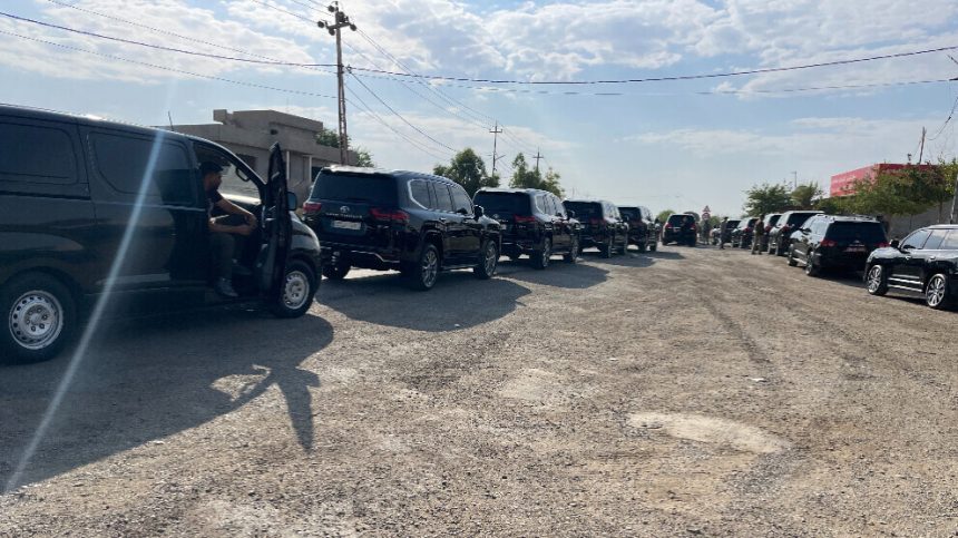 Heyeta ku ji bo şopandina merasîma komek gerîla hat bajarê Hewlêrê yê Başûrê Kurdistanê, ber bi bajarê Silêmaniyeyê ve bi rê ket ku wê merasîm lê bê lidarxistin. Heyet bi wesayitên ku rêveberiya Herêma Kurdistanê ya Federe amade kir, wê ber bi qada merasîmê ya li Silêmaniyeyê ve bê veguhestin.