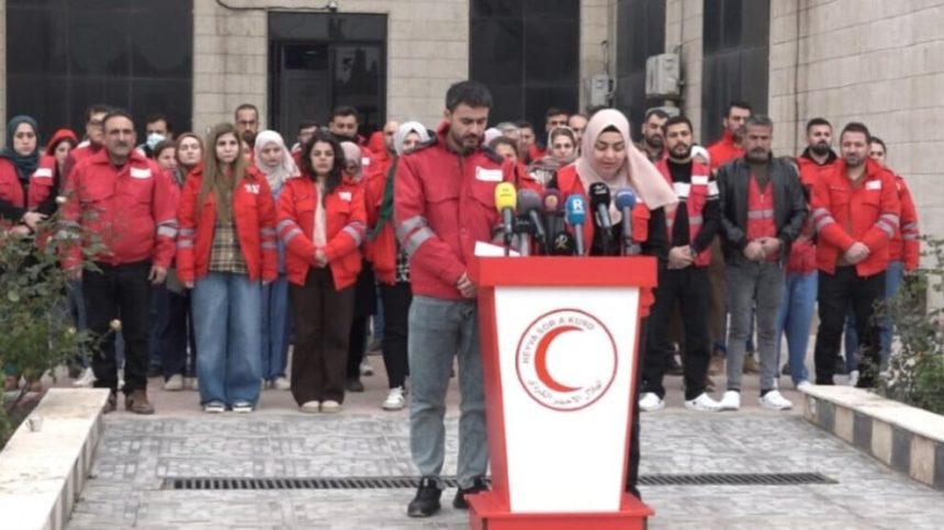 “Di bûyerên dawî de li taxên Eşrefiyê û Şêx Meqsûd li Helebê, sê endamên Heyva Sor a Kurd ji aliyê “hikumeta demkî” ve hatin girtin dema ku erkê xwe yê mirovî yê dabînkirina alîkariya yekem û lênêrîna bijîşkî ji sivîlên ku ji êrişê bandor bûne pêk dianîn.