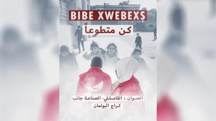 Heyva Sor a Kurd bi rêya malper û platformên xwe, bang li ciwanên di navbera 18 û 35 saliyê de kir ku serdana ofîsa sereke ya Heyva Sor a Kurd a li herêma pîşesaziyê ya li nêzî geraca Qamişloyê bikin da ku navên xwe tomar bikin û erka xwe ya mirovî pêk bînin.