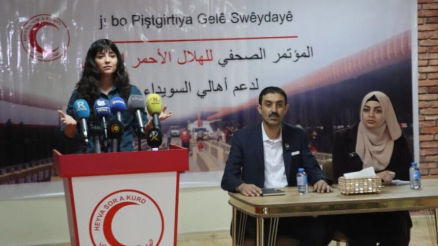 Hevserokê Heyva Sor a Kurd Dilgeş Îsa di civîna çapemeniyê de bal kişand ser rewşa mirovî û jiyanî ya li bajarê Siwêdayê û diyar kir ku pêdiviya Siwêdayê bi alîkariya lezgîn heye. Dilgeş Îsa got: “Li ku derê li ser erdîngariya Sûriyeyê be kengî alîkarî ji me were xwest em ê erka xwe ya mirovî bi cih bînin.”