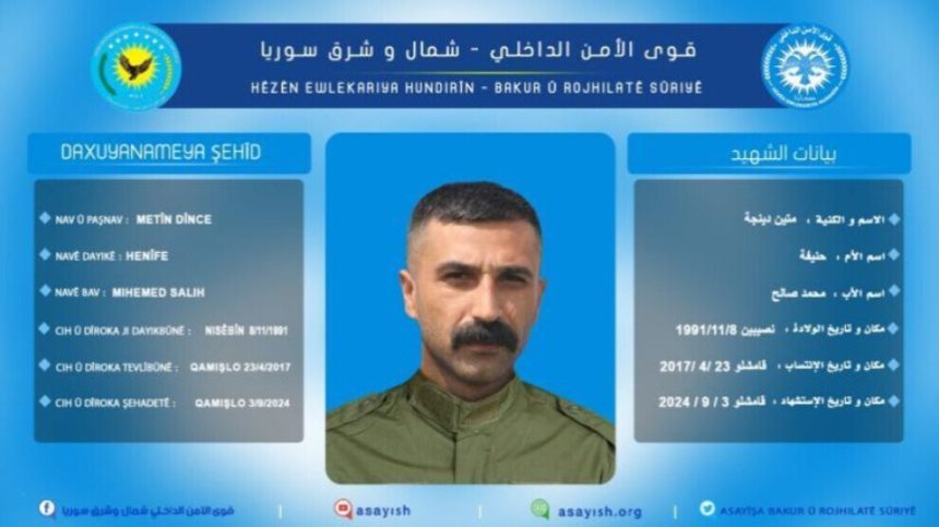 Cih û Dîroka Şehadetê: Qamişlo, 03.09.2024″