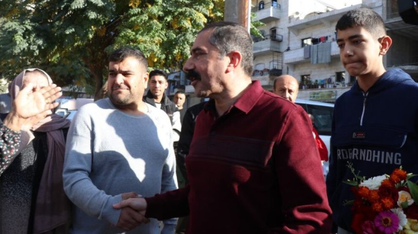 Îro şêniyên taxên Şêxmeqsûd û Eşrefiyê yên Helebê li gel koçberên ji Efrînê, Hisên Xelîl ku 30 salan li zindanên dewleta Tirk girtî bû, pêşwazî kir.