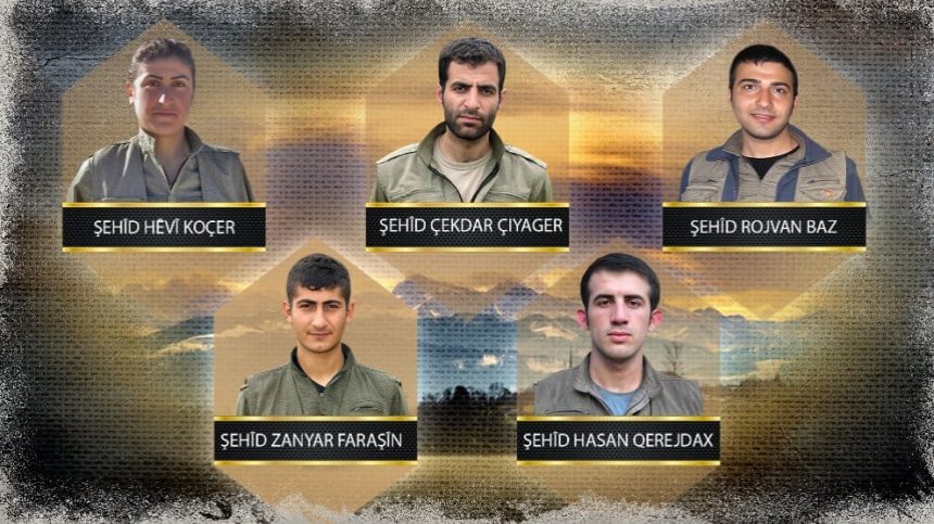 “Hevrêyên me Çekdar, Hêvî, Zanyar, Rojvan û Hasan li dijî êrîşên dagirkeriyê û îmhayê yên berfireh ên dewleta Tirk a dagirker bi ruhê fedaî yê Apoyî li ber xwe dan, welatê me Kurdistan û hebûna gelê me parastin û di sala 2017’an de şehîd bûn. Em hevrêyên xwe bi hurmet, hezkirin û minet bi bîr tînin.