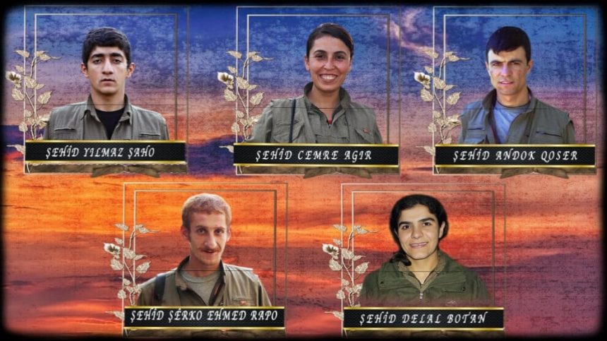 Em ji malbatên hêja yên hevrêyên me Andok, Cemre, Şêrko, Delal û Yilmaz û ji hemû gelê Kurdistanê yê welatparêz re sersaxiyê dixwazin û soz didin ku em ê bîranîna şehîdên me yên qehreman di Kurdistana azad de bidin jiyîn.