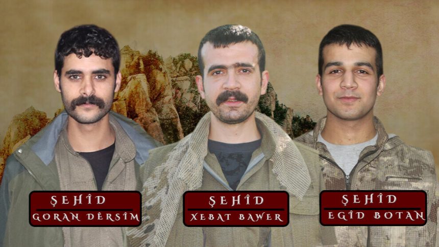 Me di daxuyaniya xwe ya 22’ê Sibata 2025’an de ragihandibû ku 3 hevrêyên me li nêzî gundê Guherzê yê Amediyê di encama kemîneke xayînane de şehîd bûne. Hevrêyên me Xebat, Egîd û Goran 20’ê Sibatê dema li ser erka xwe bûn, di encama êrîşa hewayî ya artêşa Tirk a dagirker de birîndar bûn. Hevrêyên me yên ku xwestin di 21’ê Sibatê de cihê xwe biguherin, bersiv dan êrîşa nemerdana ya li nêzî gundê Guherzê û tevî birîndarbûna xwe jî şer kirin. Hevrêyên me Xebat, Egîd û Goran ên ku mînakên bijarte yên kevneşopiya berxwedanê ne, bêdudilî çekên xwe girtin û tevî birîndarbûna xwe jî bi guleyan bersiv dan kemînvegirên xayîn. Hevrêyekî me yê ku bi giranî birîndar bû, bombeya xwe di xwe de teqand û şehîd bû. Hevrêyên me Xebat, Egîd û Goran ên ku heta kêliya dawî xeta berxwedanê û ruhê milîtanî ya Apoyî ya Gerîlayên Azadiya Kurdistanê di lûtqeyê de temsîl kirin, di vê bûyerê de şehîd bûn.