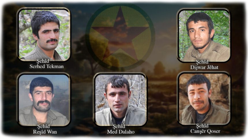 “Hevrêyên me Canşêr, Med, Reşîd, Serhed û Dijwar, di 21’ê Cotmeha 2017’an de li Zapê di êrîşên dijminî de giheştin şehadetê. Em şehîdên xwe bi rêzdarî, hesret û minet bi bîr tînin. Hevrêyên me di her eniya şer de li dijî dijmin qehremaniyeke destanî nîşan dan û em ê jî xewna wan a Rêberê Azad, Kurdistana Azad teqez pêk bînin.