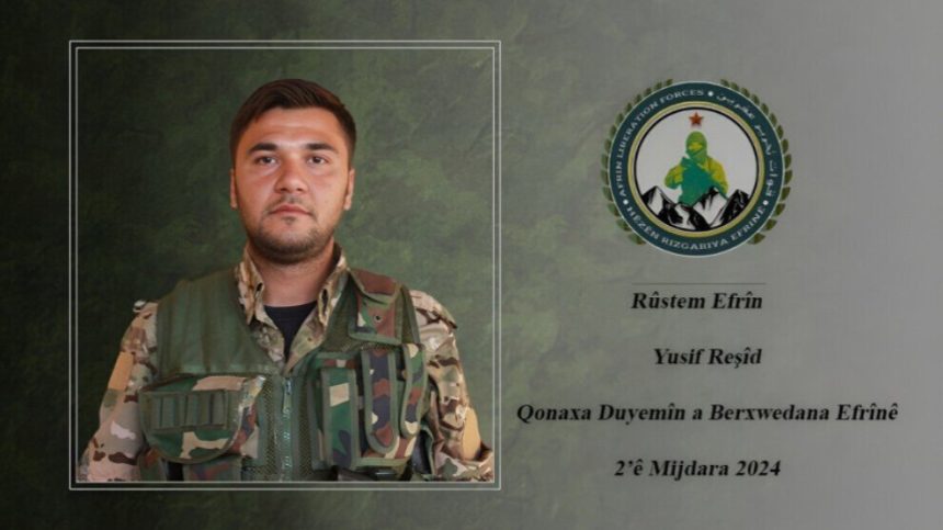 Hêzên Rizgariya Efrînê (HRE) bi daxuyaniyekê ragihand ku şervanê wê Rûstem Efrîn ji ber nexweşiyeke giran şehîd bû.