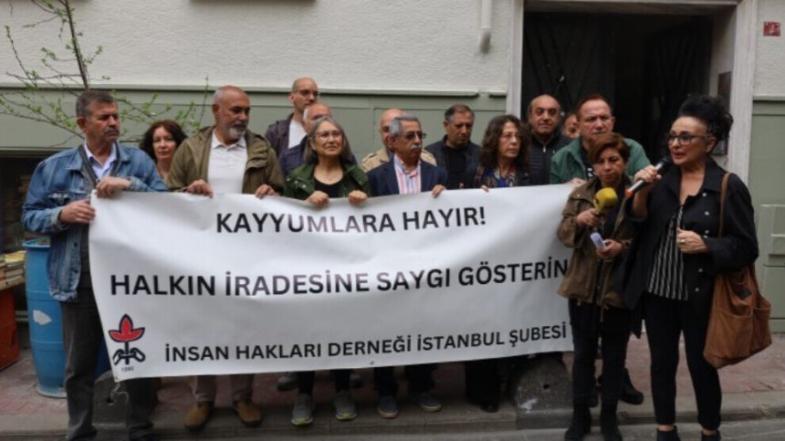 Hevseroka Giştî ya ÎHD’ê Eren Keskîn û gelek mafparêz beşdarî çalakiyê bûn. Di çalakiyê de pankarta bi nivîsa ’’Na ji qeyûma re! Rêzê li îradeya gel bigirin’’ hatin vekirin û dirûşmeya ‘’Wê qeyûm biçin, em ê bimînin’’ hate berzkirin.