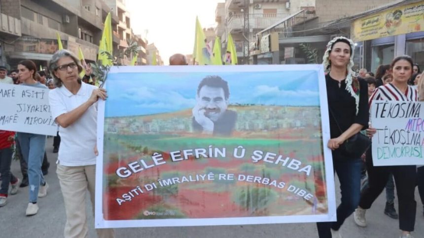 Meş ji Çerxerêya Osman Sebrî dest pê kir. Di meşê de wêneyên Rêber Apo hatin hildan û dirûşmên “Bê Serok jiyan nabe” hatin berzkirin.