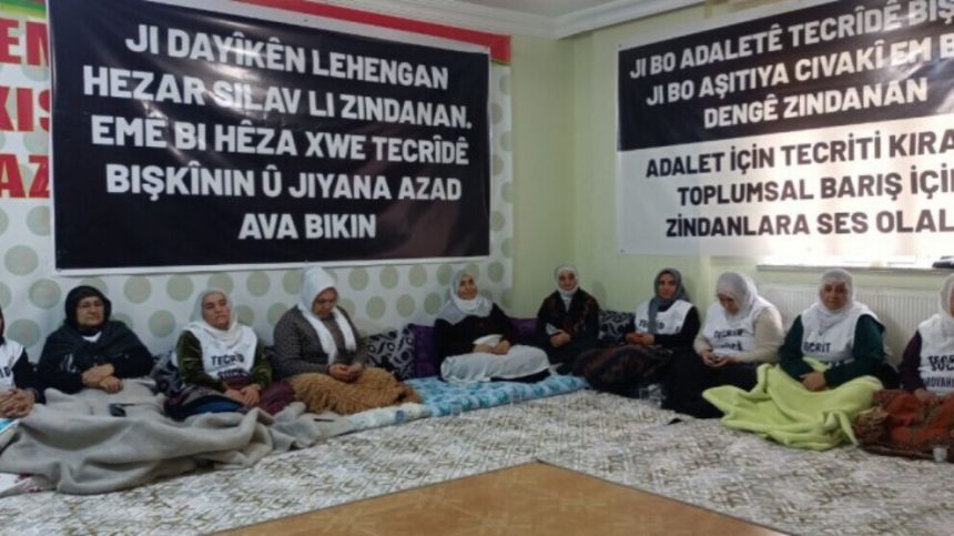 Di nobetê de gelek caran dirûşmên “Bijî berxwedana zindanan”, “Bê Serok jiyan nabe” û “Jin, jiyan, azadî” hatin berzkirin. Dayikan jî stranên Kurdî gotin.