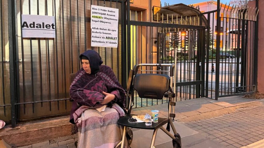 Emîne Şenyaşar ku hevjîn û du zarokên wê ji alî parastvan û xizmên parlamenterê AKP’ê yê berê Îbrahîm Halîl Yildiz ve hatibû qetilkirin, bi daxwaza ku Emîne Şenyaşar û kurê wê Ferît Şenyaşar ku Parlamenterê Partiya Wekhevî û Demokrasiyê ya Gelan (DEM Partî) e, ji bo darizandina faîlan û berdana Fadil Şenyaşar li pêşiya Edliyeya Rihayê dest bi Nobeta Edaletê kiribûn li Enqereyê li ber wezareta dadê di roja 57’emîn de berdewam kir.