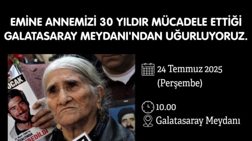 Bernameya merasîma cenaze ye Dayika Şemiyê Emîne Ocak diyar bû. Emîne Ocak wê li Qada Galatarasayê ku bûye sembola têkoşîna edaletê ya Dayikên Şemiyê bê oxirkirin. Merasîm wê sibe saet di 10:00 de pêk were û saet di 16:00 de li Cemxaneya Gazî merasîm bê lidarxistin. Piştre jî li Goristana Gazî bê veşartin.
