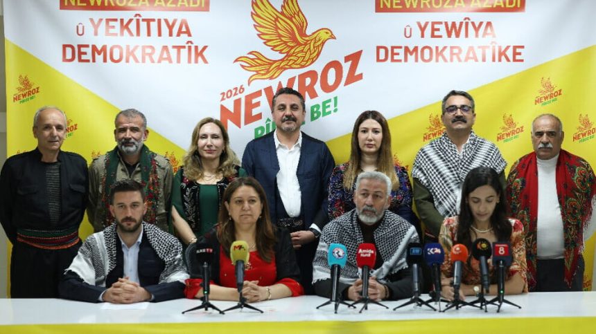 Hevserokê DBPa Amedê Ahmet Dogan jî axivî û wiha got: “Em dixwazin Newroza 2026an bibe Newroza azadiyê, hêviyê û zemîna demokrasiyê. Sala 2026an bibe Newroza azadiya Rêberê Gelê Kurd û hêviya gelan. Ji ber vê yekê me ev Newroze wek ‘Newroza Azadî û Yekîtiya Demokratîk’ bi nav kir. Lê belê armanca me ya yekemîn, azadiya fizîkî ya Rêberê Gelê Kurd e. Dîsa li her çar parçeyên Kurdistanê ji bo mafê gelê Kurd û statuya gelê Kurd, sala 2026an ji bo me salek pirr dîrokî û girîng e. Li hemû navçe, gund, bajarok û navendên me bi awayekî girseyî xebat û amadekariyên Newrozê tên kirin. Amadekariyen me yên li Qada Newrozê jî ber bi dawî ve diçin. Di hêla ewlehiyê de jî me bi sedan hevalên xwe peywîrdar kirine. Ev Newroza 2026an dê ji Newrozên din bi coştir û xurttir derbas bibe. Ji ber vê yekê em hemû gelê xwe vedixwînin; Cejna Newrozê. Werin em bi hev re Cejna Remezanê û Cejna Newrozê bi hev re pîroz bikin.”