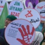 Daxuyanî bi dirûşmeyên “Jin, jiyan, azadî” û “Kuştinên jinan polîtîk e” bi dawî bû.
