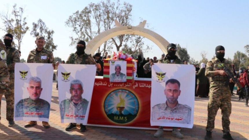 Cenazeyê şervanên Hêzên Cebhet El Ekrad ên QSD’ê Elî El Ehmed ê 3’yê Adarê li kantona Tebqayê şehîd bibû bi merasîmek hat veşartin. Ji bo şervanên Cebhet El Ekrad Mihemed El Taha û Nasir Xelîfe yên 8’ê Kanûna 2024’an li Minbicê şehîd bûbûn merasîma xiyabî hat lidarxistin. Merasîm bi amadebûna bi sedan şêniyên Tebqayê, koçberên ji kantona Efrîn-Şehbayê, endam û rêveberên meclîs û desteyên Rêveberiya Xweser, Partiya Sûriyeya Paşerojê, Kombûna Jinan a Zenûbiya, şervanên QSD’ê û Hêzên Ewlekariya Hundirîn li Pakrewangeha Şehîdan a bajarê Tebqayê hat lidarxistin.