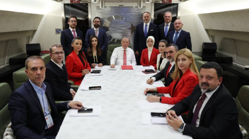 Serokkomarê AKP’î Recep Tayyîp Erdogan di dema vegera ji Azerbaycanê de di balafirê de bersiva pirsên rojnamevanan da.