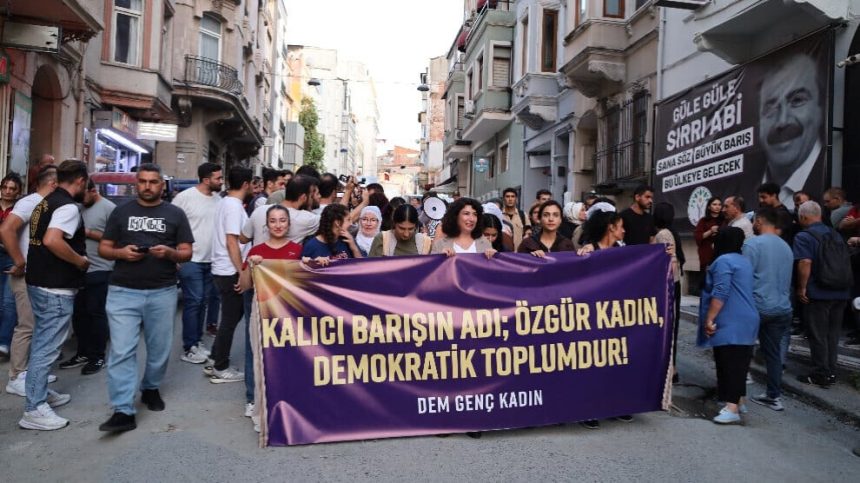 Meclîsa Jinên Ciwan a Partiya Wekhevî û Demokrasiyê ya Gelan (DEM Partî) bi boneya 1’ê Îlonê bi dirûşmeya “Em di jiyana sosyalîst de israr dikin, em bi Rêbertiya azad dimeşin” li ber avahiya Rêxistina DEM Partî ya Stenbolê kom bûn. Girseya ku dixwest ber bi Mala Piştgiriyê ya Guneş a Dolapdere ve bimeşe, ji aliyê polîsan ve hat astengkirin. Girseyê bi dirûşmeyan nerazîbûn nîşan da. Girseyê li wir daxuyaniya çepemeniyê da. Daxuyanî ji aliyê endama Meclîsa Jinên Ciwan a DEM Partiyê Ayşegul Sakalli ve hat xwendin.