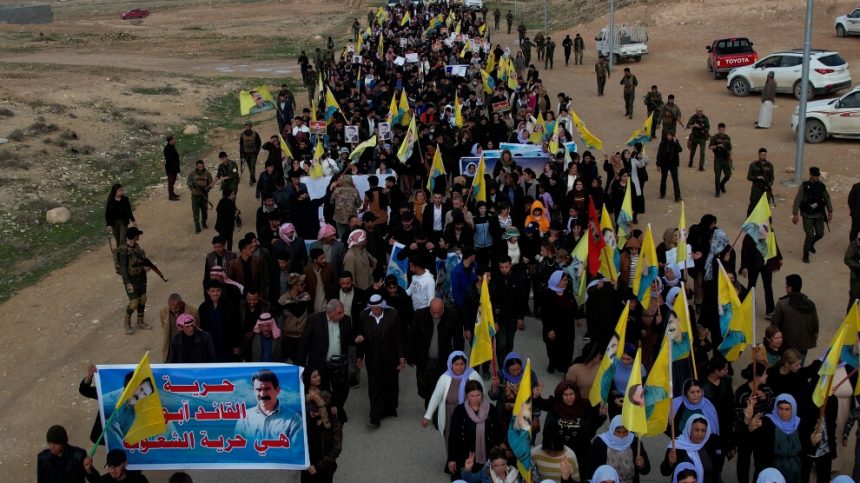 Di meşê de ciwanan bêyî navber dirûşmeyên “Em ciwan fedayiyên Rêber Apo ne” û “Bi can bi xwîn, em bi te re ne ey Serok” berz kirin.