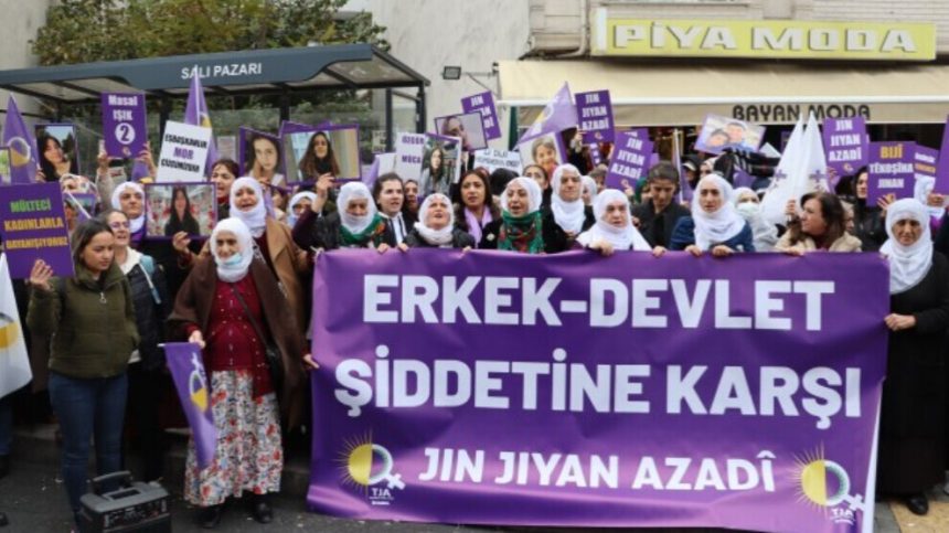 Tevgera Jinên Azad (TJA) bi boneya 25’ê Mijdarê Roja Têkoşîna li Dijî Tundiya Ser Jinê ya Navneteweyî, li pêşiya Hawîza Şaredariya Esenyurt a Stenbolê bi dirûşma “Li dijî tundiya mêr-dewletê jin jiyan azadî” çalakî lidar xist. Gelek aktîvîstên TJA’yê tevlî bûn. Di çalakiyê de dovîzên “Em ji bo azadiya xwe têdikoşin”, “Qeyûm, xespkirina îradeya jinê ye”, “Bijî têkoşîna jinan” û “Jin jiyan azadî” hatin hilgirtin. Her wiha wêneyên Gulistan Doku û Nagihan Akarsel hatin hilgirtin. Jinan gelek caran dirûşmên “Cînayetên jinan polîtîk in” û “Jin jiyan azadî” berz kirin.