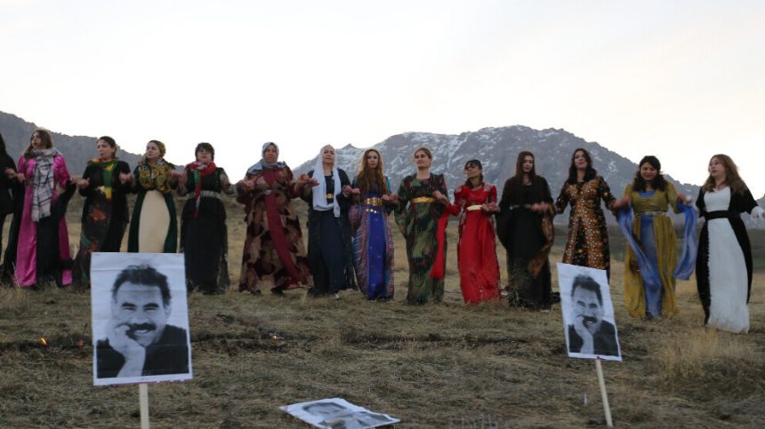 Jin bi kincên xwe yên neteweyî tevlî pîrozbahiyê bûn û dirûşmên “Bijî Serok Apo”, “Rojbûna te pîroz be ey Serok Apo” û “Bê Serok jiyan nabe” qîriyan.