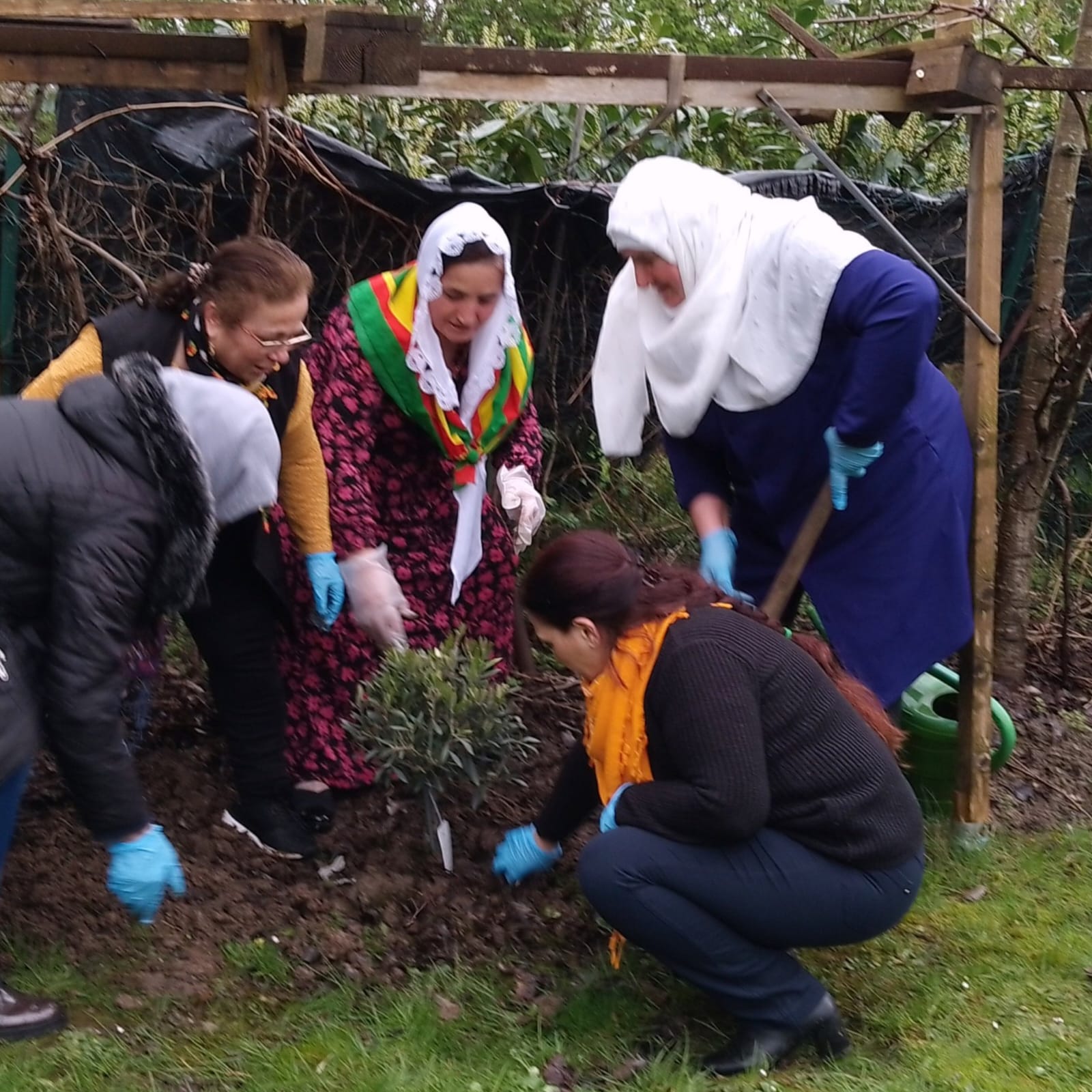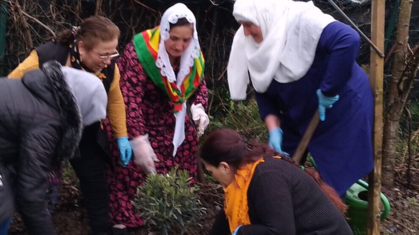 Berdevka Meclîsa Jinan a Sêvê Emîne Çewlîg piştî çandina şitlan axivî û got, “Heke Rêbertî azad bibe wê jin jî azad bibe, gelê Kurd jî azad bibe.”
