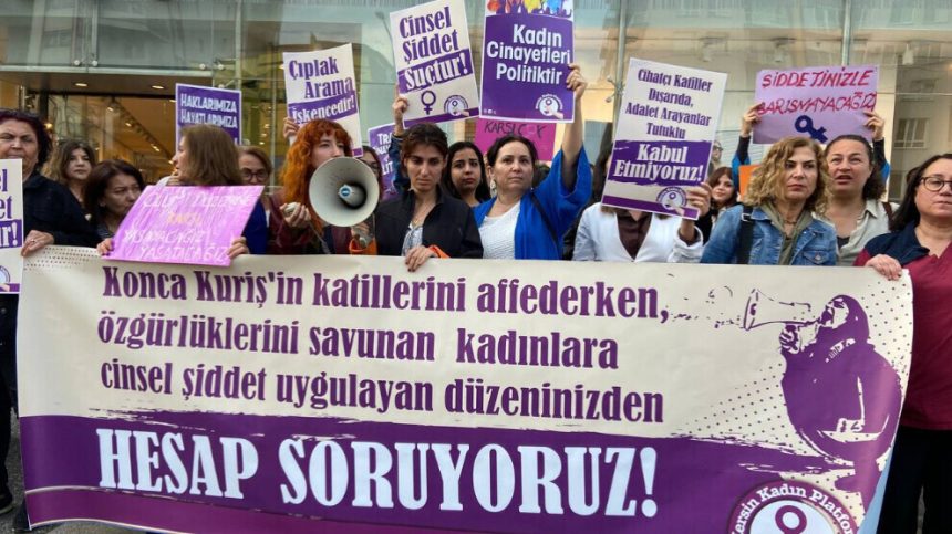Platforma Jinan a Mêrsînê, lêgerînên tazî yên li ser jinên di binçavan de û berdana kujerê aktîvîsta femînîst Konca Kuriş a ji aliyê Hîzbullahê ve hat qetilkirin, protesto kir. Çalakî li ber Pozcu Kotonê hat lidarxistin. Di çalakiyê de pankartên “Lêgerîna tazî êşkence ye” û “Kujerên cîhadîs li derve re ne, yên edaletê dixwazin girtîn e” hildan. Jinan di çalakiyê de bê navber dirûşmeyên “Tundiya zayendî sûc e” û “Lêgerîna tazî êşkenceye” berz kirin.