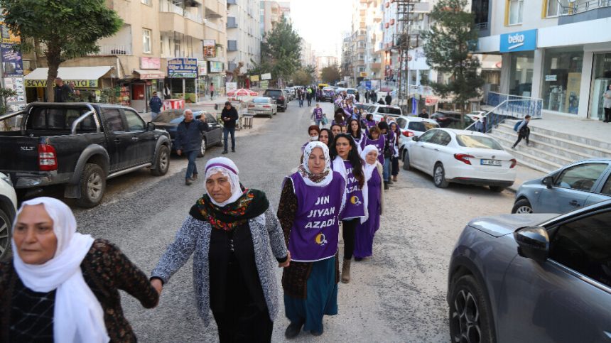 Li dijî êrîşên dagirkeriyê yên dewleta Tirk li ser Heleb û Bakur û Rojhilatê Sûriyeyê pêk tîne, jin bi bangawaziya Tevgera Jinên Azad (TJA) hatin ba hev û xwestin xeleka jiyanê ava bikin. Jin li ser çerxerêya Qoserê hatin ba hev û heta Parka Karayollariyê destên hev girtin û meşiyan. Jinên dixwestin xeleka jiyanê ava bikin ji aliyê polîsan ve hatin dorpêçkirin û destûra meşê nehat dayîn. Jinan bi pêşmalkên bi nivîsa “Jin jiyan azadî” û bi desmalên spî li hev kom bûn, li dijî hewlên astengkirinê rê ji bo çûn û hatinê girtin. Jinan timî dirûşmeyên “Rojava dilê me, berxwedan e karê me”, “Jin jiyan azadî”, “Bijî berxwedana Rojava”, “Bijî Şlreşa Jinan a Rojavayê”, “Berxwerdana jinan wê têk bibe çeteyan” berz kirin û piştî demekê dawî li çalakiya rûniştinê dan û dîsa berê xwe dan barîkatên polîsan. Di dema gengeşiyê de Parlamentera DEM Partiyê Salîha Aydenîzê bangî polîsan kir û got: “Ma hûn piştgiriya çeteyan dikin?”