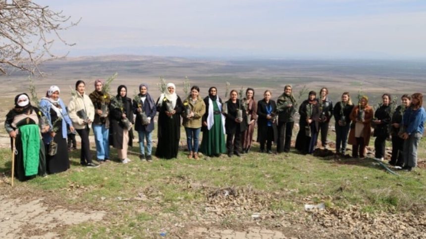 Nûnerên Partiya Wekhevî û Demokrasiyê ya Gelan (DEM Partî) di çalakiyê de axivîn, diyar kirin ku ew bi boneya 8’ê Adarê kom bûne û anîn ziman ku wan darên zeytûnan ku sembola aşitiyê ye, li baxçeyê jinan çandine. Jinan peyama; ‘’Bila ev dar bibin wesîleya aşitiyê’’ da.