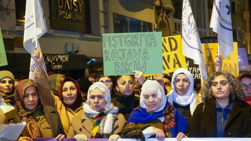 Jinên ku li ber Konsolosxaneya Sûriyeyê ya li Stenbolê xwepêşandan kirin û diyar kirin ku ew piştgiriya ku hikûmeta Tirkiyeyê dide van çeteyan qebûl nakin, ji ANF’ê re axivîn û banga hevgirtina ji bo Rojava kirin.