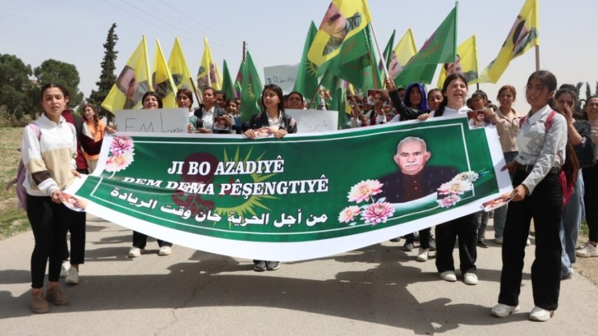 Yekitiya Jinên Ciwan ji bo azadiya fîzîkî ya Rêber Apo bi dirûşma “Ji bo azadiyê dem dema pêşengtiyê ye” li bajarê Qinê yê li rojavayê Kobanê meşek lidar xist.
