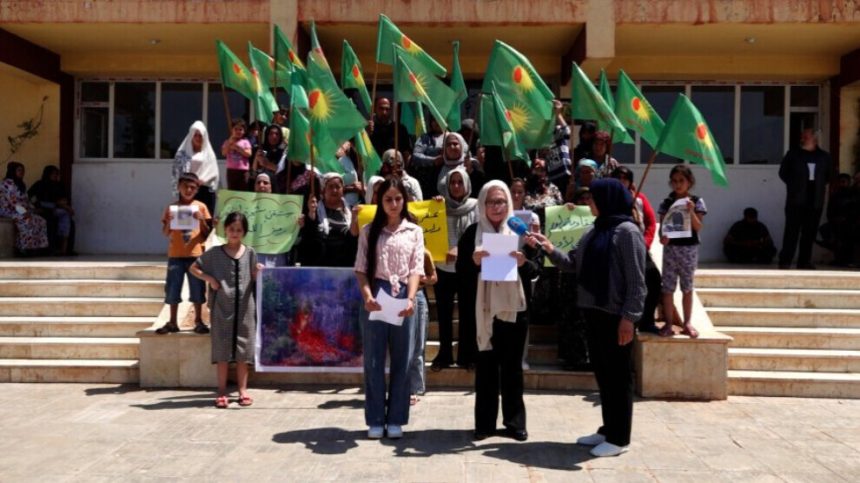 Jinên ji kantona Efrîn-Şehbayê yên ku ji ber dagirkeriya dewleta Tirk û çeteyên wê koçber bûne, li pêşiya avahiya Hewza Firatê kom bûn. Jinan bi amadebûna bi dehan koçberên ji Efrîn-Şehbayê û endamên Kongra Star der barê sûcên li Efrînê têne kirin de daxuyaniyek da.
