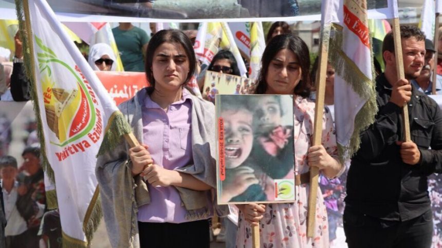 Jinên Êzdî yên bi navê Ezîze Xalid Elî (25) û Tawaf Dawûd Çeto (24) ku 1’ê Tebaxa 2024’an ji destê çetayan hatin rizgarkirin, di roja sêyemîn a azadiya xwe de tevlî meşa protestoyî ya li bajarê Amûdê bûn.