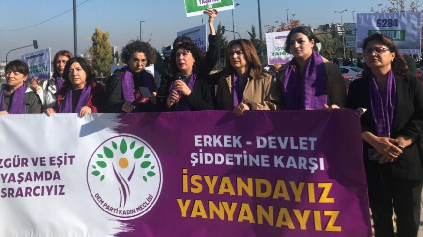 Berdevka Meclisa Jinan a Partiya Wekhevî û Demokrasiyê ya Gelan (DEM Partî) Halîde Turkoglû, Serokekîla Koma DEM Partiyê Gulistan Kiliç Koçyîgît û endamên meclisê bi boneya 25’ê Mijdarê Roja Têkoşîna li Dijî Tundiya li Ser Jinê ya Cîhanê li ber Wezareta Malbat û Xizmetên Civakî axivîn. Jinan pankartên bi nivîsa “Em di jiyana azad û wekhev de israr dikin, li dijî tundiya dewletê ya li ser jinan di serhildanê de ne”, û “Jin jiyan azadî” hilgirtin.