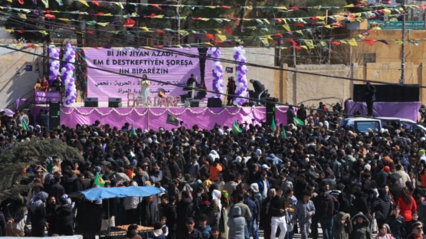 Meş li qada Şehîd Egîd veguherî mitîngê û deqeyek rêz hat girtin. Piştre endama Meclisa Kongra Star a bajarê Kobanê Cûrî Temî peyama Rêber Apo ya 8’ê Adarê xwend.