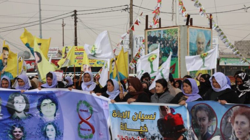 Piştî daxuyaniyê meş bi berzkirina dirûşma ‘Jin Jiyan Azadî’ bidawî bû.