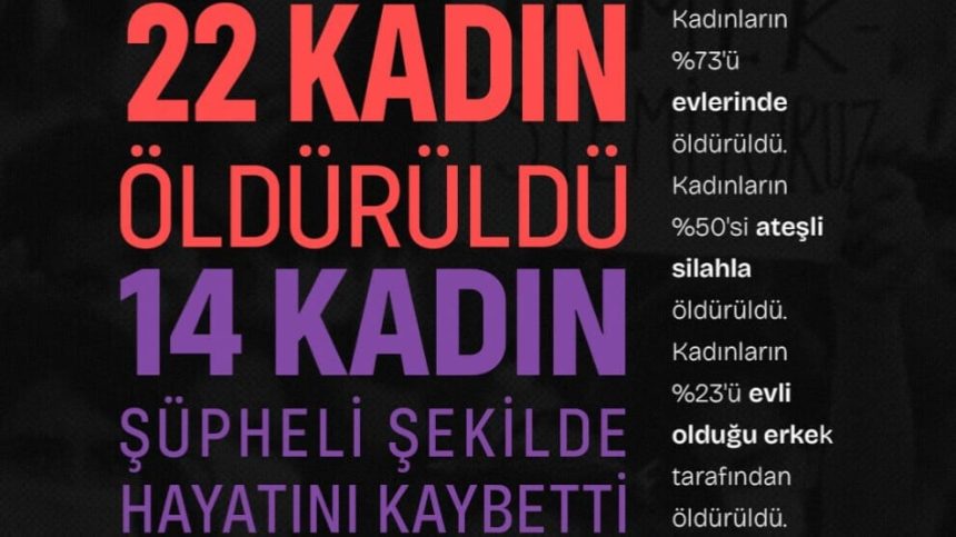 Li gorî daneyên rapora Paltforma Em ê Cînayetên Jinan Rawestînin (KCDP) di meha Çileyê de 22 jin hatin qetilkirin û 14 jin bi awayekî gumanbar jiyana xwe ji dest dan.