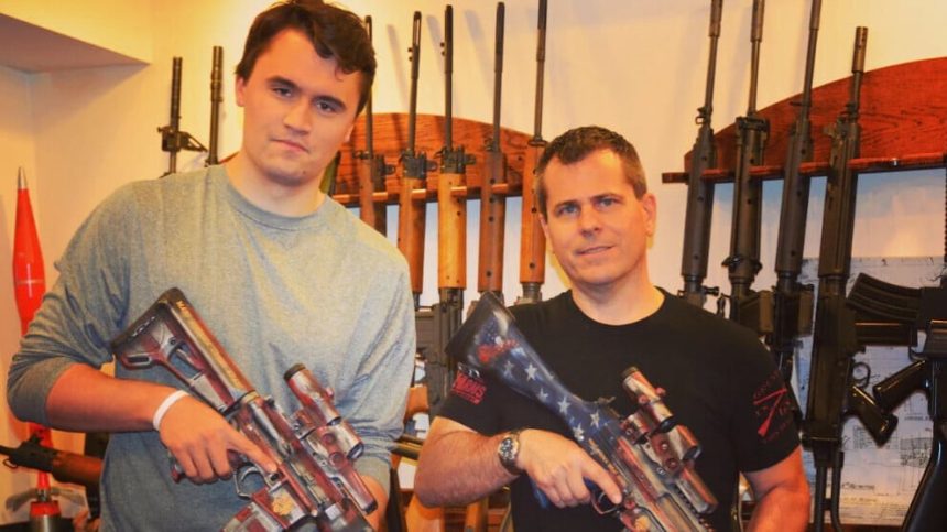 Kirk ê serokê rêxistina ciwanan a bi navê Turning Point USA û alîgirê Donald Trump, 5’ê Nîsana 2023’yan di çalakiyeke li Salt Lake Cityê de pirsên têkildarî mijara mafê hilgirtina çekan ku madeyeke zêde ya duyemîn a Qanûna Bingehîn a DYE’ye ye bersivandibûn. Kirk di vê axaftina xwe de diyar kiribû ku armanca sereke ya çekhilgirtina şexsî ‘’xweparastina li hemberî hikûmeteke despotîk e’’ û ev yek anîbûn ziman: