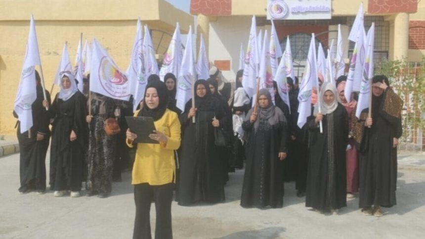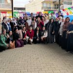 Endamên Meclisa Kombûna Jinan a Zenûbiya ya Dêrazorê li pêşiya avahiya xwe ya li bajarê Kisrayê hatin gel hev û daxuyanî da. Rêvebera meclisê Seher El Mistefa daxuyanî xwend.