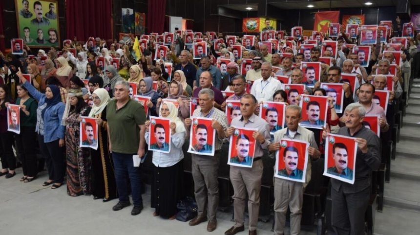 Beriya ku konferans dest pê bike deqeyekê rêz hat girtin. Hevseroka Malbatên Şehîdan a Kantona Firatê ya berê Eyşe Efendî di vekirina konferansê de axivî û konforans li Rêberê Gelê Kurd Abdullaj Ocalan û şehîdên şoreşê pîroz kir û got,”Gelê Kurd ê li ber mirinê bû, bi hatina Rêber Apo re jinûve vejiya. Em bi rihê Apoyî li ser lingê xwe sekinîn. Rêber Apo got ‘me bi derziyê bîr koland û ew bîr veguherî vejînbûnekê û deryayek ji wê avê derket’. Li gel misilmanan ava zemzemê heye, lê ava me xwîna şehîdên me ne û evahiya pêkhateyên herêmê jî ji wê avê qurtek vexwar. Me bi wê hêzê desr pê kir em ê bi ser bikevin e jî.”