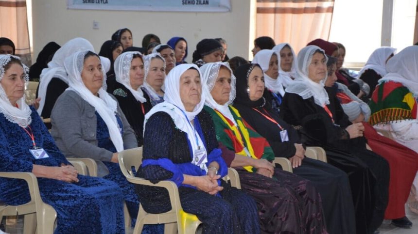 Salona konferansê bi wêneyên Rêber Apo, şehîdên pêşeng ên jin, pankartên ‘Divê Jin Di Avakirina Jiyaneke Wekhev û Azad De Pêşeng Be’ û ‘Bi Têkoşîna Jinan Ber Bi Rêbertiya Gerdûnî Ve’ hatiye xemilandin.