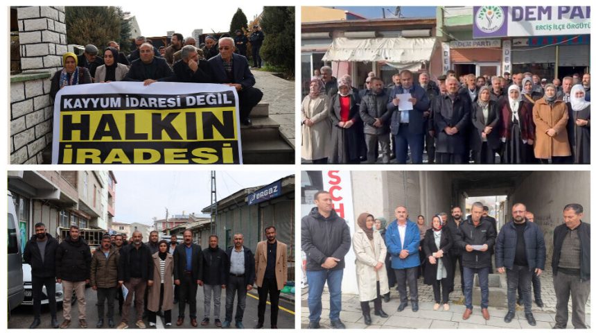 Li dijî desteserkirina şaredariya Bajarê Mezin a Mêrdîn, Êlih û Xelfetiyê û tayînkirina qeyûman bi pêşengiya Partiya Wekhevî û Demokrasiyê ya Gelan (DEM Partî), Tevgera Jinên Azad (TJA) û Partiya Herêmên Demokratîk li navçeyên Erdîş, Qelqelî, Elbak, Seray, Miks, Payîzava, Ebax, Westan, Şax û Bêgirî yên Wanê daxuyaniya hevpar hate dayîn.